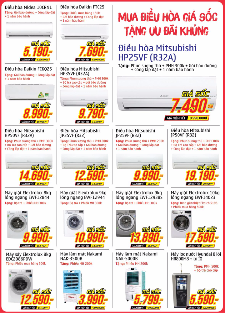 Siêu thị Điện máy Minh Quang còn triển khai những ưu đãi hấp dẫn cho ĐIỀU HÒA như tặng công lắp đặt, tặng gói bảo dưỡng, tặng thêm 1 năm bảo hành đến từ Siêu thị Điện máy Minh Quang.
